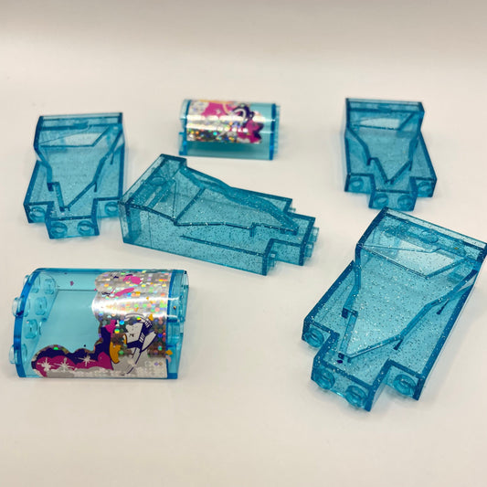 LEGO Rock, Trans Blue Glitter, 6 Pieces, stickers damaged