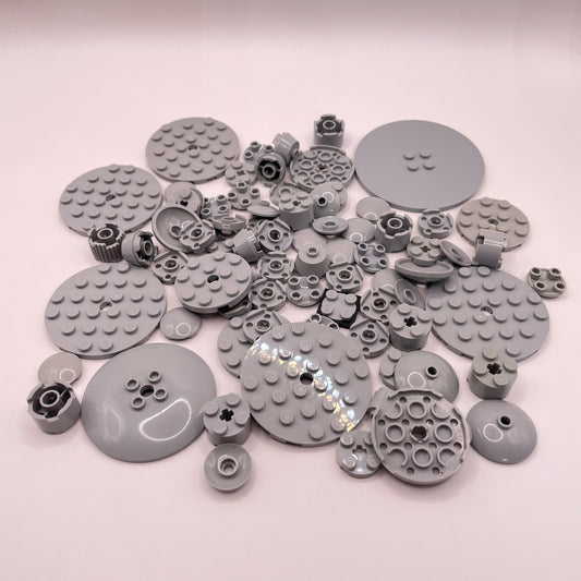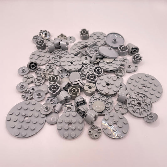 LEGO Round Mixed Plates and Bricks, Light Bluish Grey, Approx. 55g